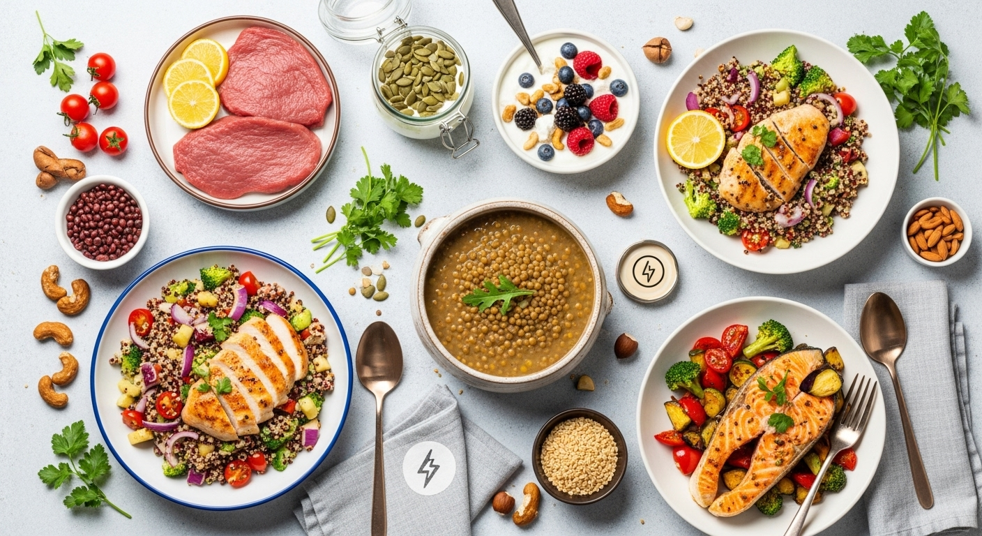 Typische Zutaten sind Fleisch, Fisch, Hülsenfrüchte, Eier, Milchprodukte oder pflanzliche Eiweißquellen wie Tofu und Quinoa. - Welche Lebensmittel eignen sich am besten für eiweißreiche Mahlzeiten?